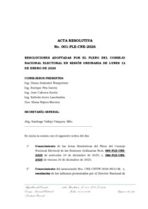 Acta Resolutiva de la sesión ordinaria No. 001-PLE-CNE-2026
