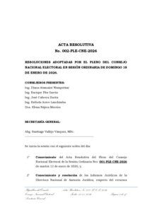 Resoluciones adoptadas por el Pleno del Consejo Nacional Electoral en sesión ordinaria de domingo 18 de enero de 2026