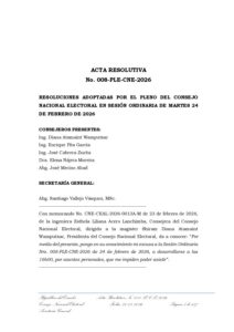Resoluciones adoptadas por el Pleno del Consejo Nacional Electoral en sesión ordinaria de martes 24 de febrero de 2026