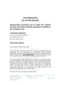 Resoluciones adoptadas por el Pleno del Consejo Nacional Electoral en sesión ordinaria de viernes 31 de octubre de 2025
