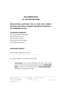 Resoluciones adoptadas por el Pleno del Consejo Nacional Electoral en sesión ordinaria de martes 11 de noviembre de 2025