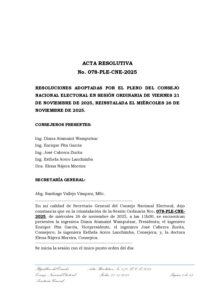 Resoluciones adoptadas por el Pleno del Consejo Nacional Electoral en sesión ordinaria de viernes 21 de noviembre de 2025; y, reinstalada el miércoles 26 de noviembre de 2025.
