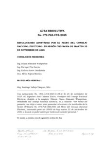 Resoluciones adoptadas por el Pleno del Consejo Nacional Electoral en sesión ordinaria de martes 25 de noviembre de 2025