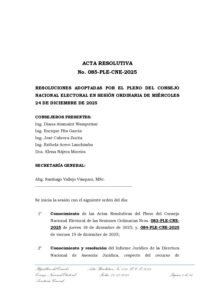 Resoluciones adoptadas por el Pleno del Consejo Nacional Electoral en sesión ordinaria de miércoles 24 de diciembre de 2025