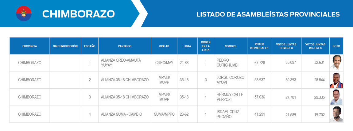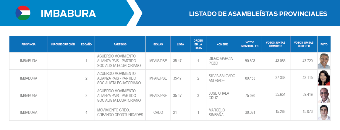 ASAMBLEÍSTAS ELECTOS POR PROVINCIA Y CIRCUNSCRIPCIÓN