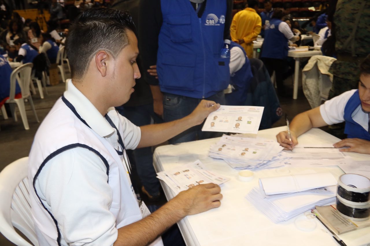 En presencia de observadores internacionales, representantes de organizaciones políticas, grupos sociales y medios de comunicación, el Consejo Nacional Electoral de Ecuador (CNE) continúa con el