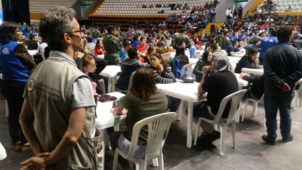 En las instalaciones del Coliseo General Rumiñahui, en Quito, la tarde de este 17 de abril, se llevó a cabo un simulacro del reconteo de