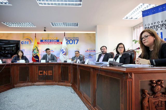 En comisión general, el Pleno del Consejo Nacional Electoral, presidido por su titular doctor Juan Pablo Pozo Bahamonde; la Vicepresidenta, Nubia Villacís; los Consejeros, Paúl
