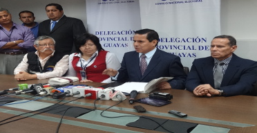 Esta mañana, durante una rueda de prensa el doctor Lincoln Mora, Director de la Delegación Provincial del Guayas del Consejo Nacional Electoral (CNE), acompañado de